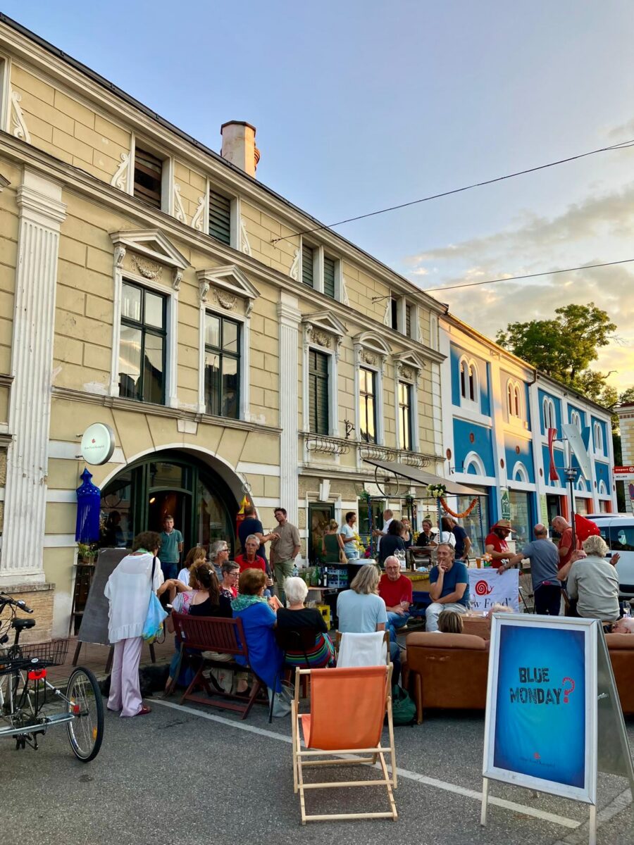 Wir arbeiten mit großer Freude und Intensität an Vor Ort Veranstaltungen, zB „Blue Monday“, einer monatlichen Vorstellung regionaler LebensmittelproduzentInnen oder besonderen Initiativen in dieser Richtung – zB Gartenküche, Marktgärtnerei, mobile Teeküche, ….